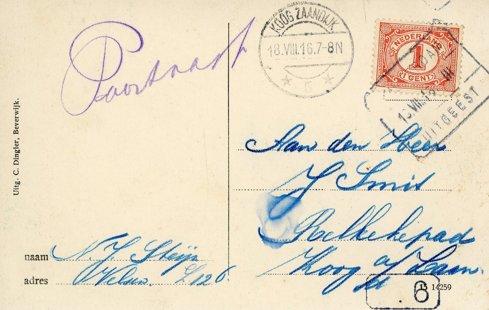 Datum afstempeling1916-08-18